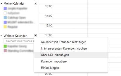 5. Klick auf den Pfeil nach unten neben 'Weitere Kalender', Klick auf 'Über URL hinzufügen'